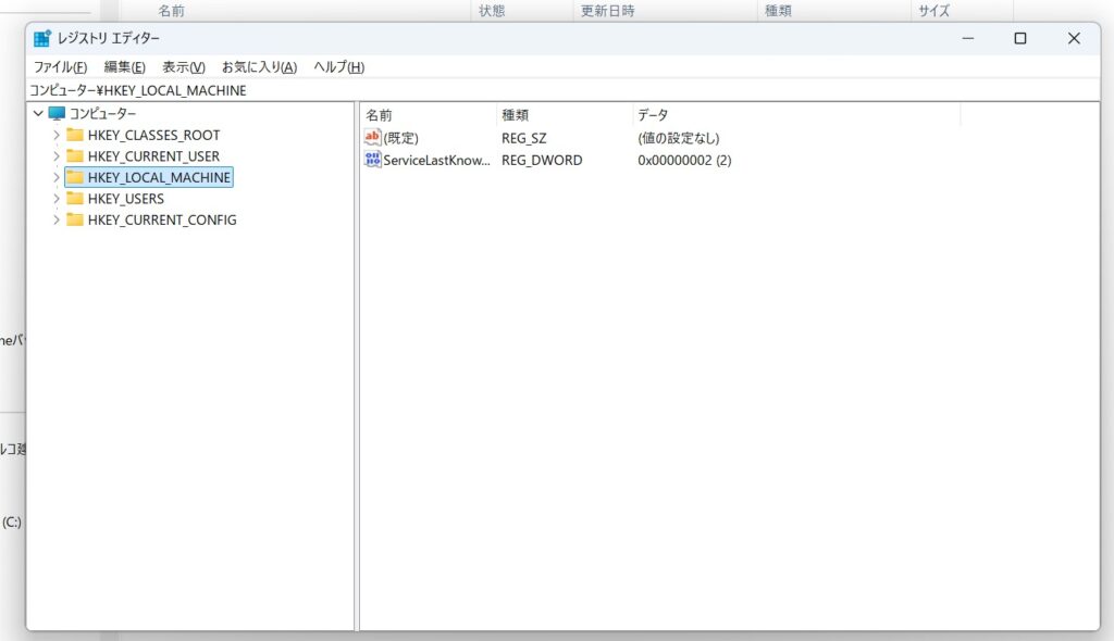 「このアプリがデバイスに変更を加えることを許可しますか?」→「はい」を選択すると、レジストリエディタが立ち上がります。