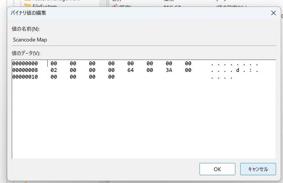 ③「Keyboard Layout」にファイル(バイナリ値)を作成する
