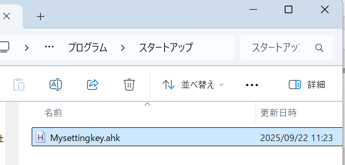 作成したAHKファイルをスタートアップフォルダに格納します。
