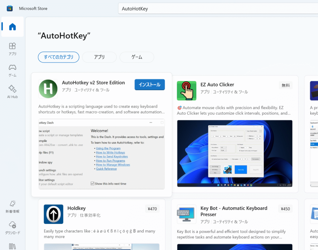 Micorosoft Storeを開き、「AutoHotKey」と検索します。
