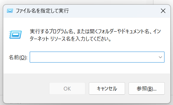 [Windows]キー+[R]を押すと「ファイル名を指定して実行」が開きます。